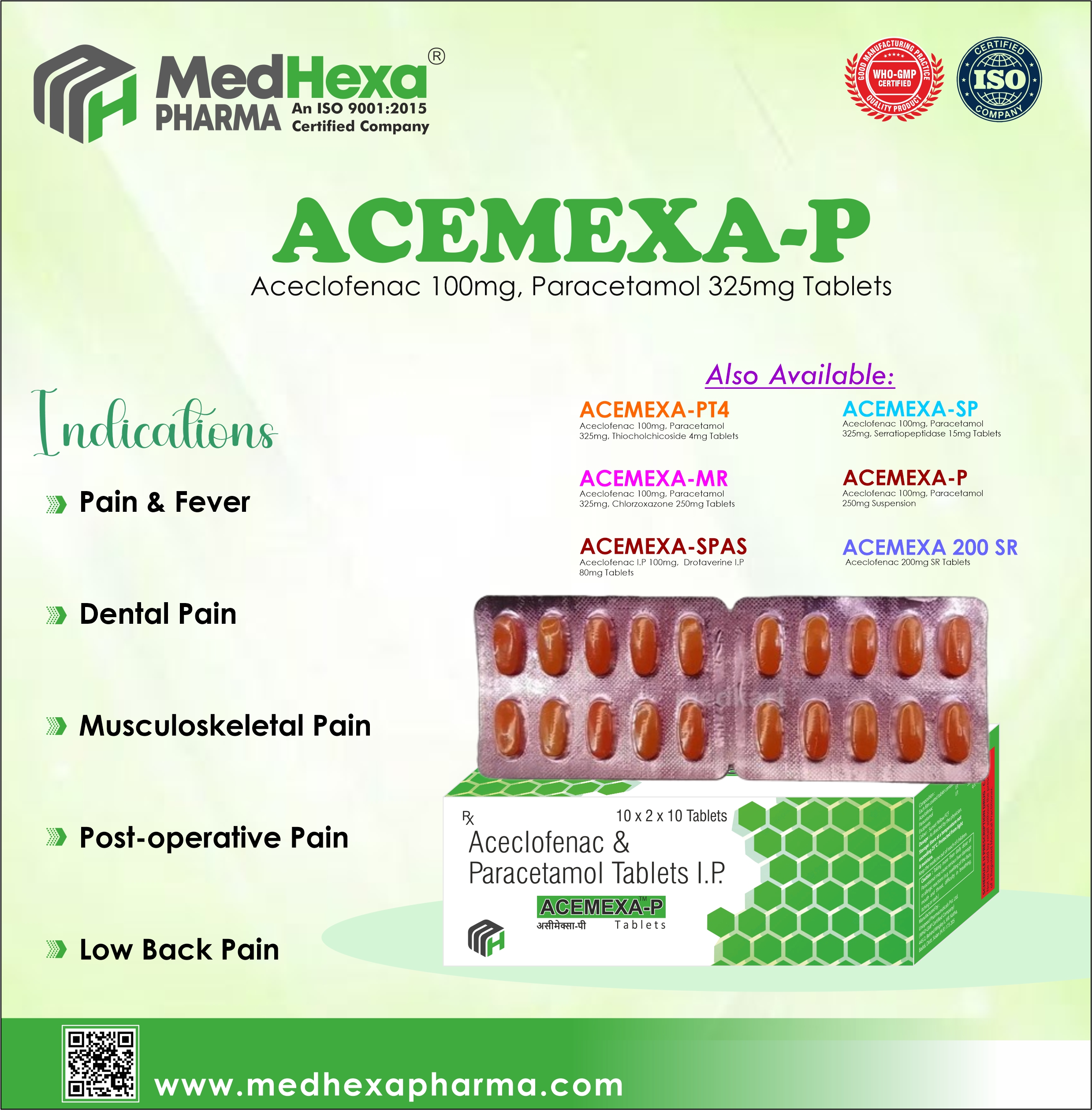ACECLOFENAC 100MG, PARACETAMOL 325 MG
