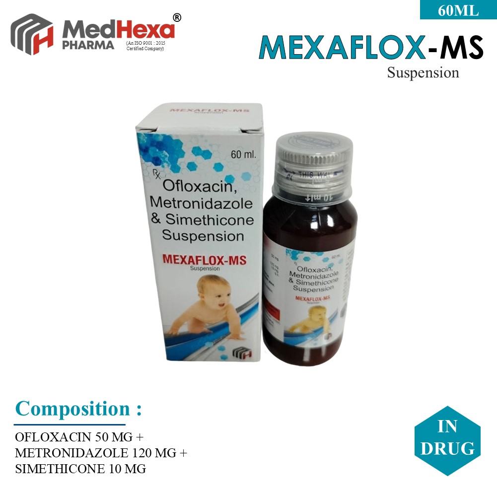 OFLOXACIN 50 MG + METRONIDAZOLE 120 MG + SIMETHICONE 10 MG