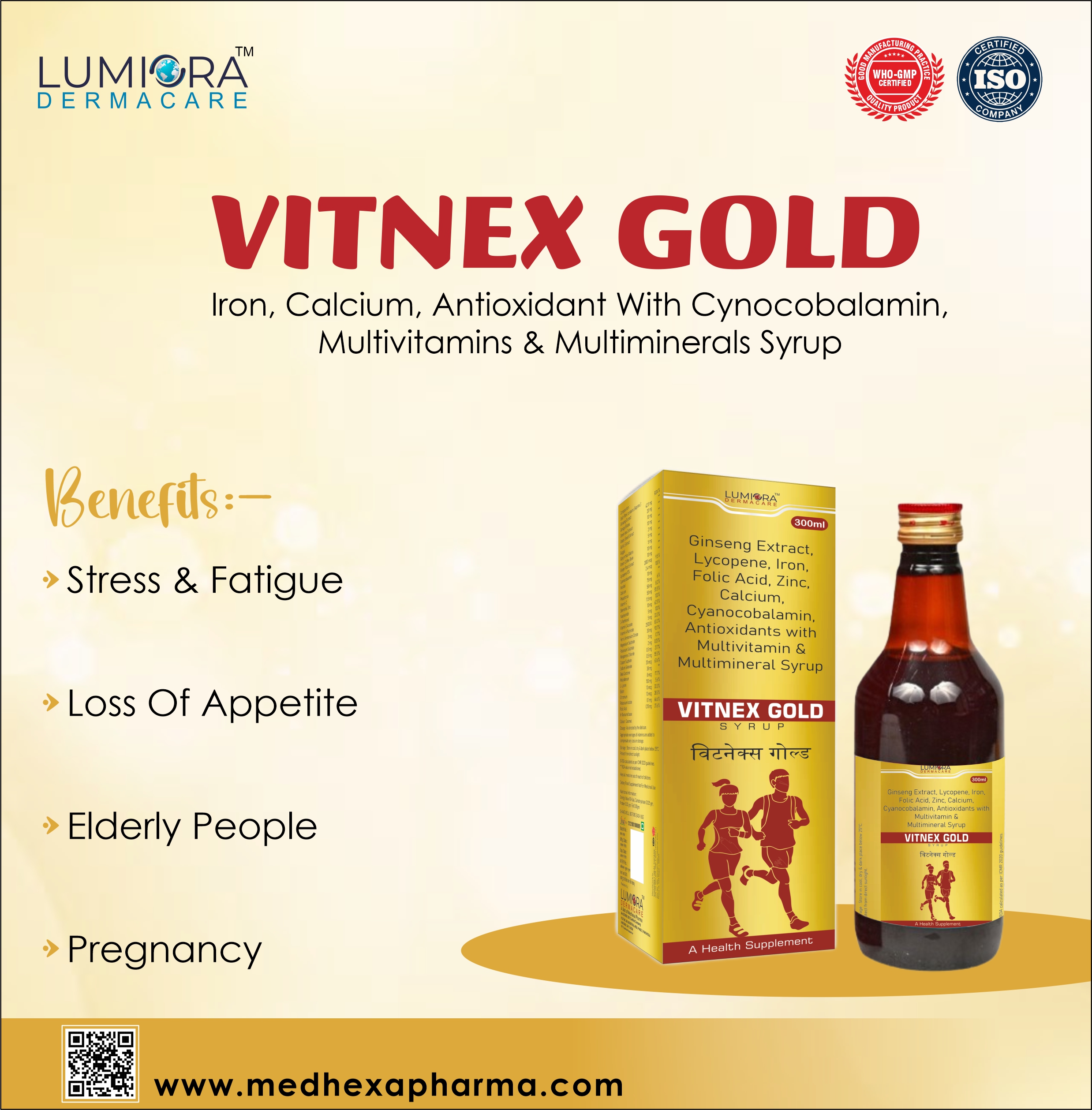 GINSENG EXTRACT, LYCOPENE, IRON, FOLIC ACID, ZINC, CALCIUM, CYNOCOBALAMIN,ANTIOXIDANT, MULTIVITAMINS & MULTIMINERALS SYRUP